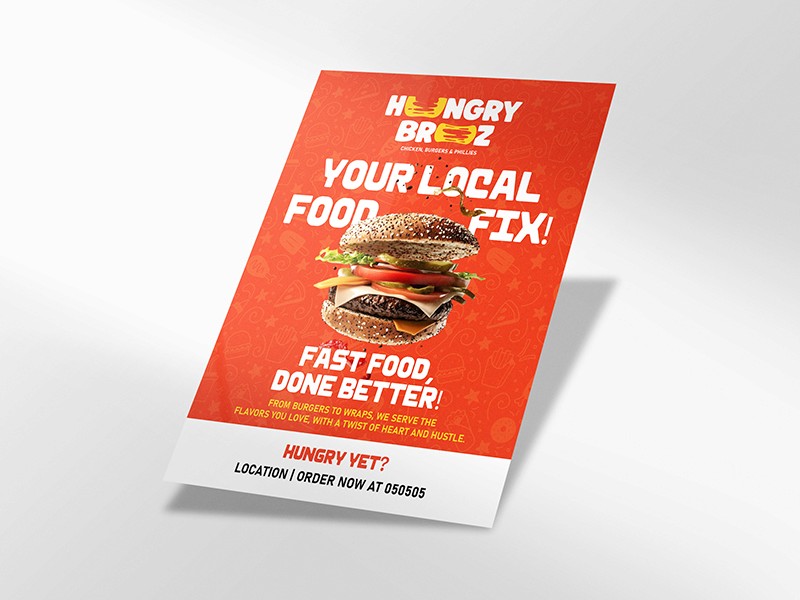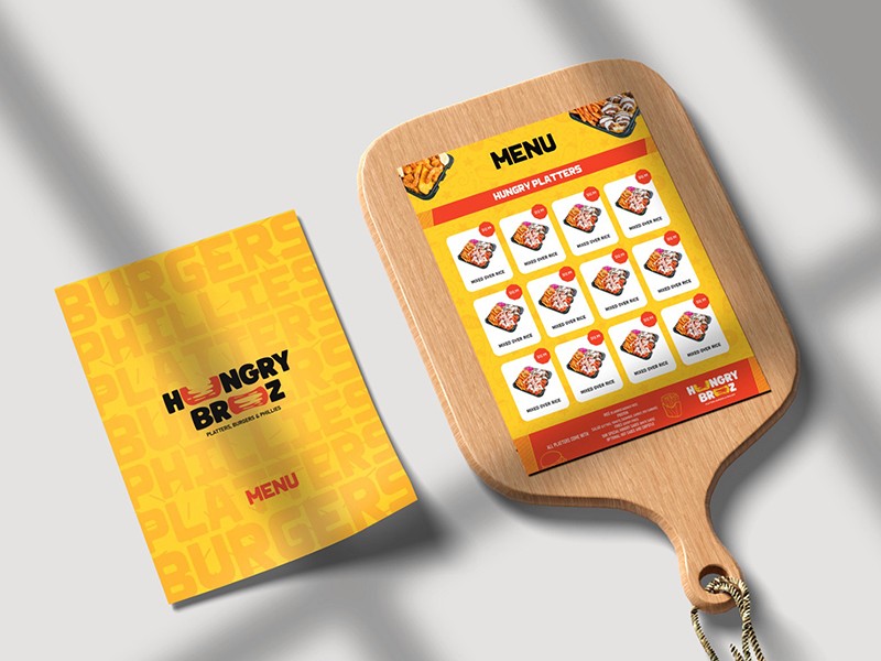 Hungry Broz is a US-based fast-food chain. The engagement focused on brand strategy and graphic design, including logo, menus, and packaging, with the aim of creating a cohesive identity suited to its target audience.